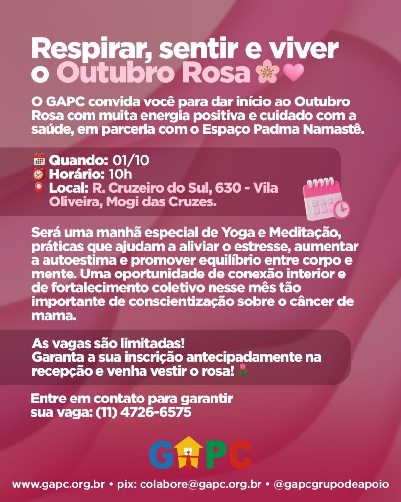 Respirar, sentir e viver o Outubro Rosa – GAPC Mogi das Cruzes